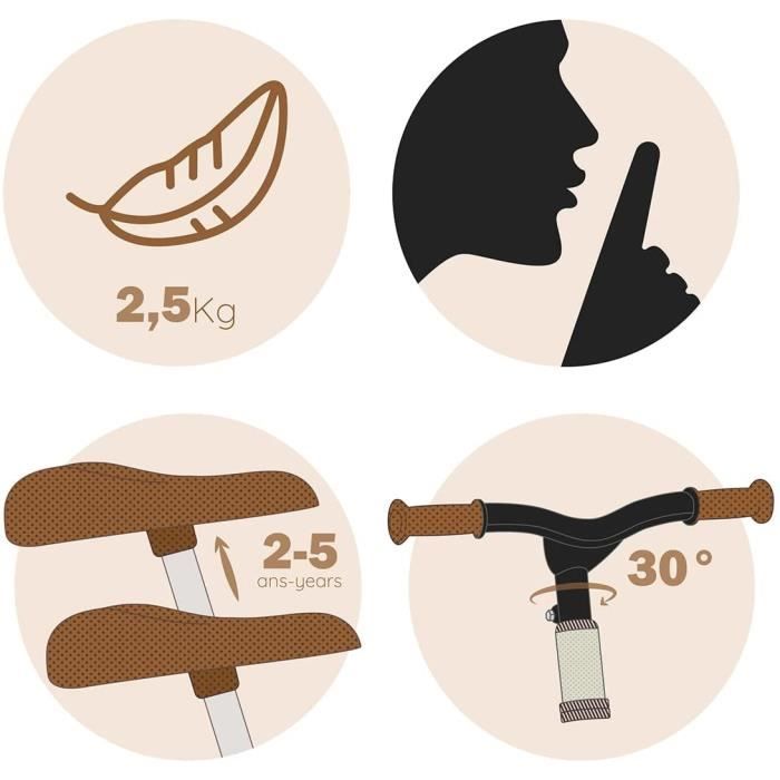 The balance bike allows the child to develop his balance, his coordination and his confidence. It’s the most effective and fun way to prepare your child for riding a real bike. In addition, the adjustable saddle will allow prolonged use from 2 to 5 years. Spanish manufacturing.