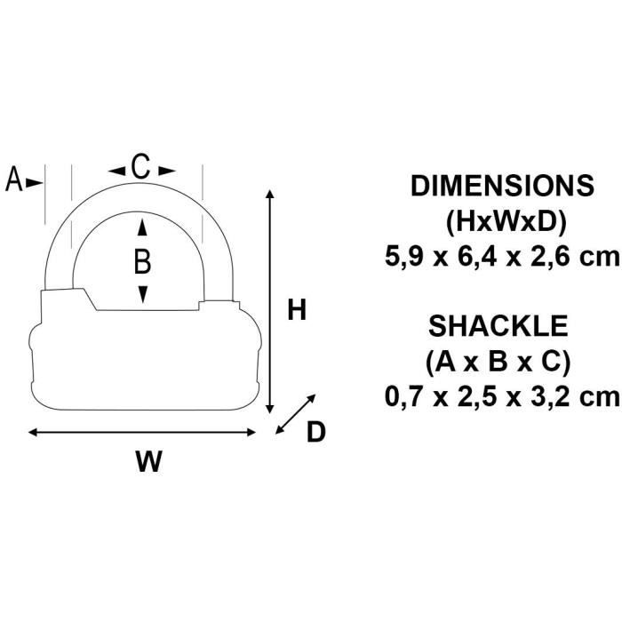 64mm Sport Padlock – Case-hardened steel handle 25mm, diam. 7mm for increased resistance to cutting and sawing – 4 digit programmable combination – Double-lock – Soft touch black knobs with 2-point grip to prevent skidding – Silver gray body finish – Limited Lifetime Warranty