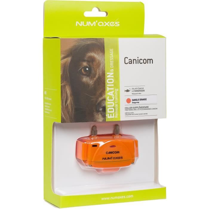 Additional Canicom training collar working with all remote controls in the Canicom range from NUM’AXES. Several modes are possible: -warnings by beeps -adjustable electrostatic stimulations